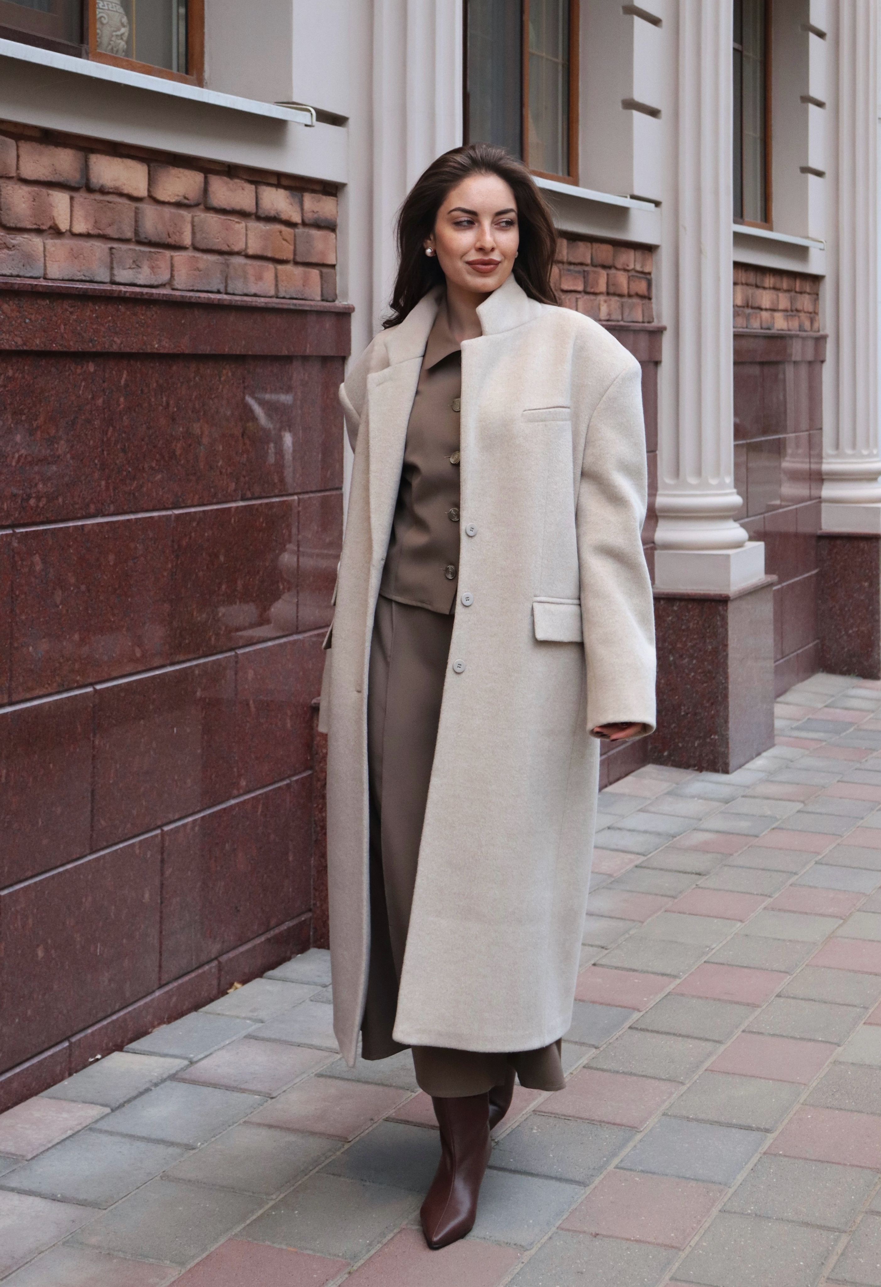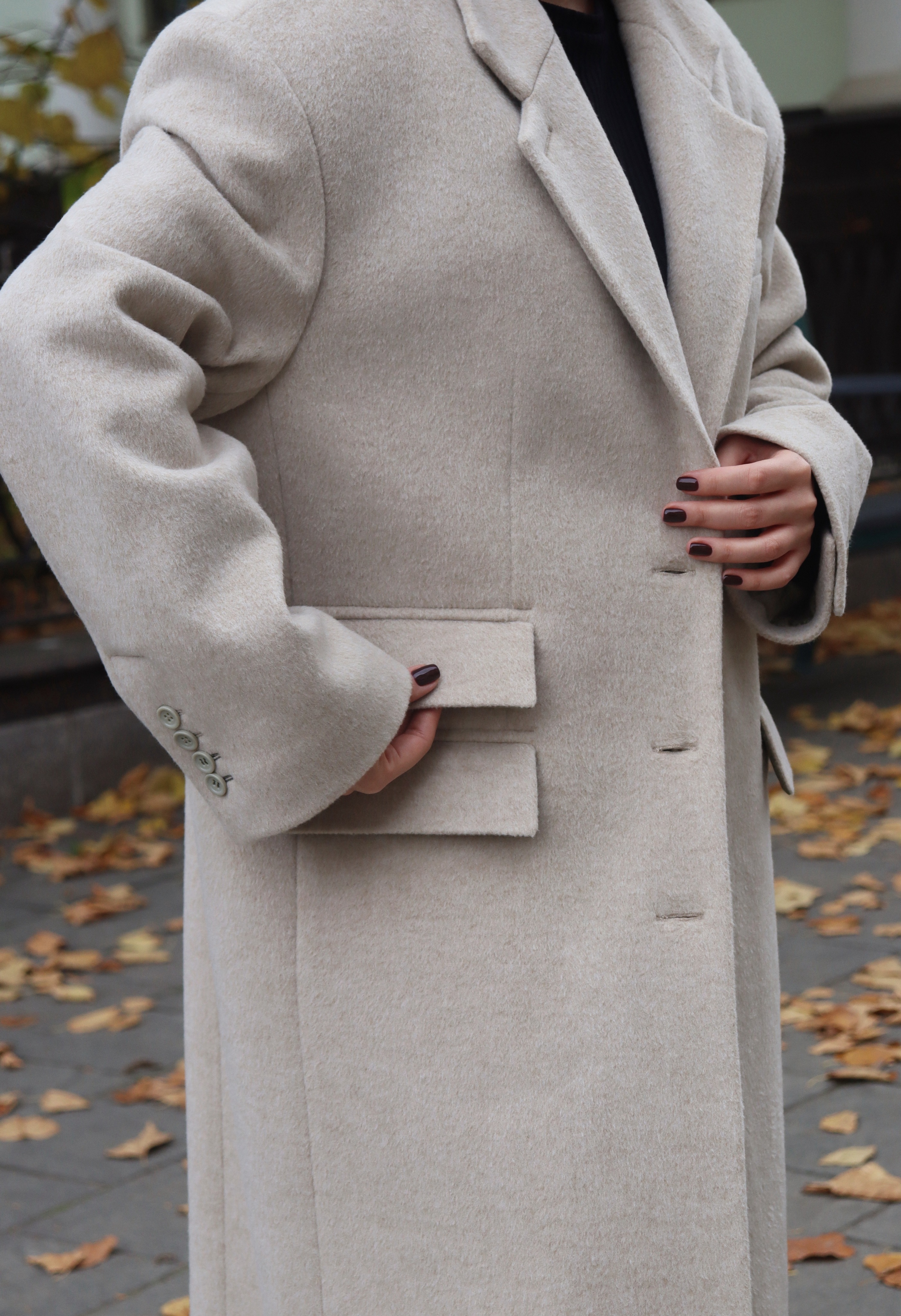 Совет по стилю: носите с платьем, костюмом или объемным свитером — пальто MAKTUB легко поддержит любой образ, от повседневного до более собранного.