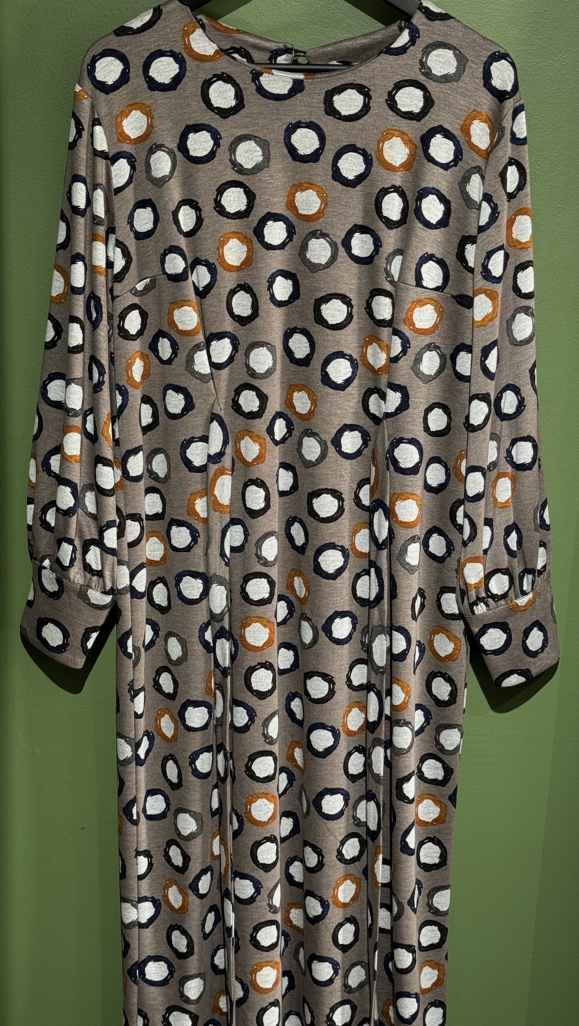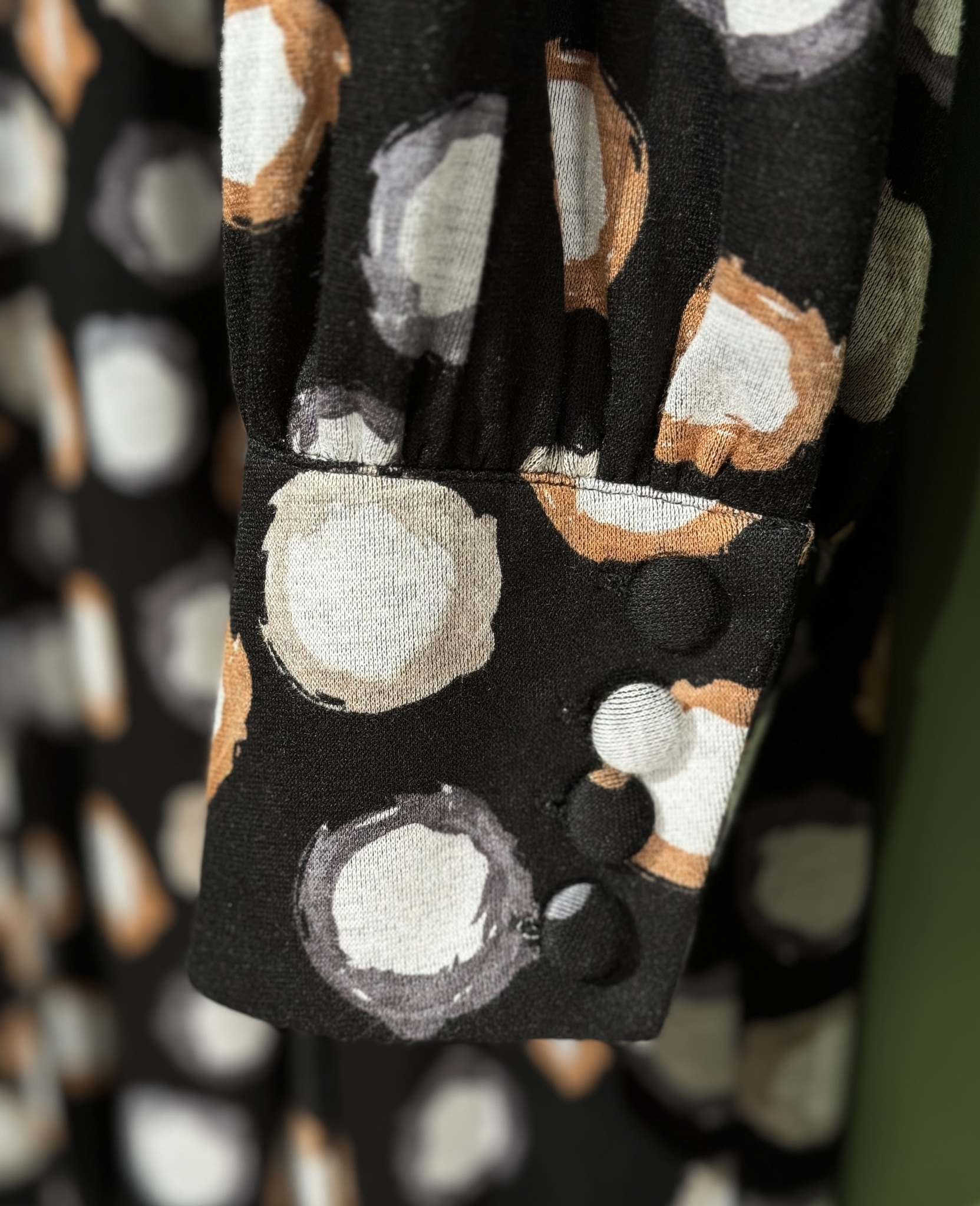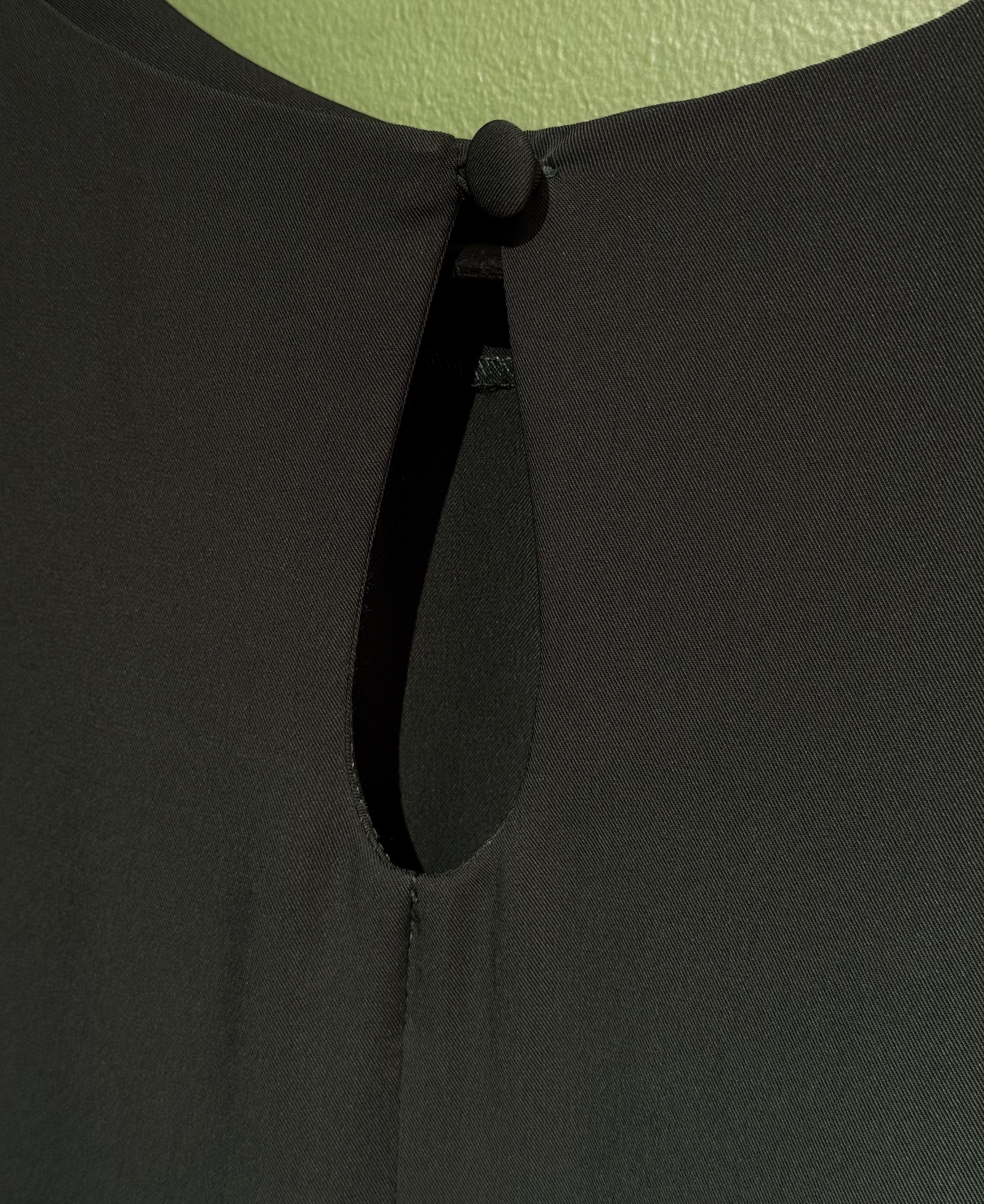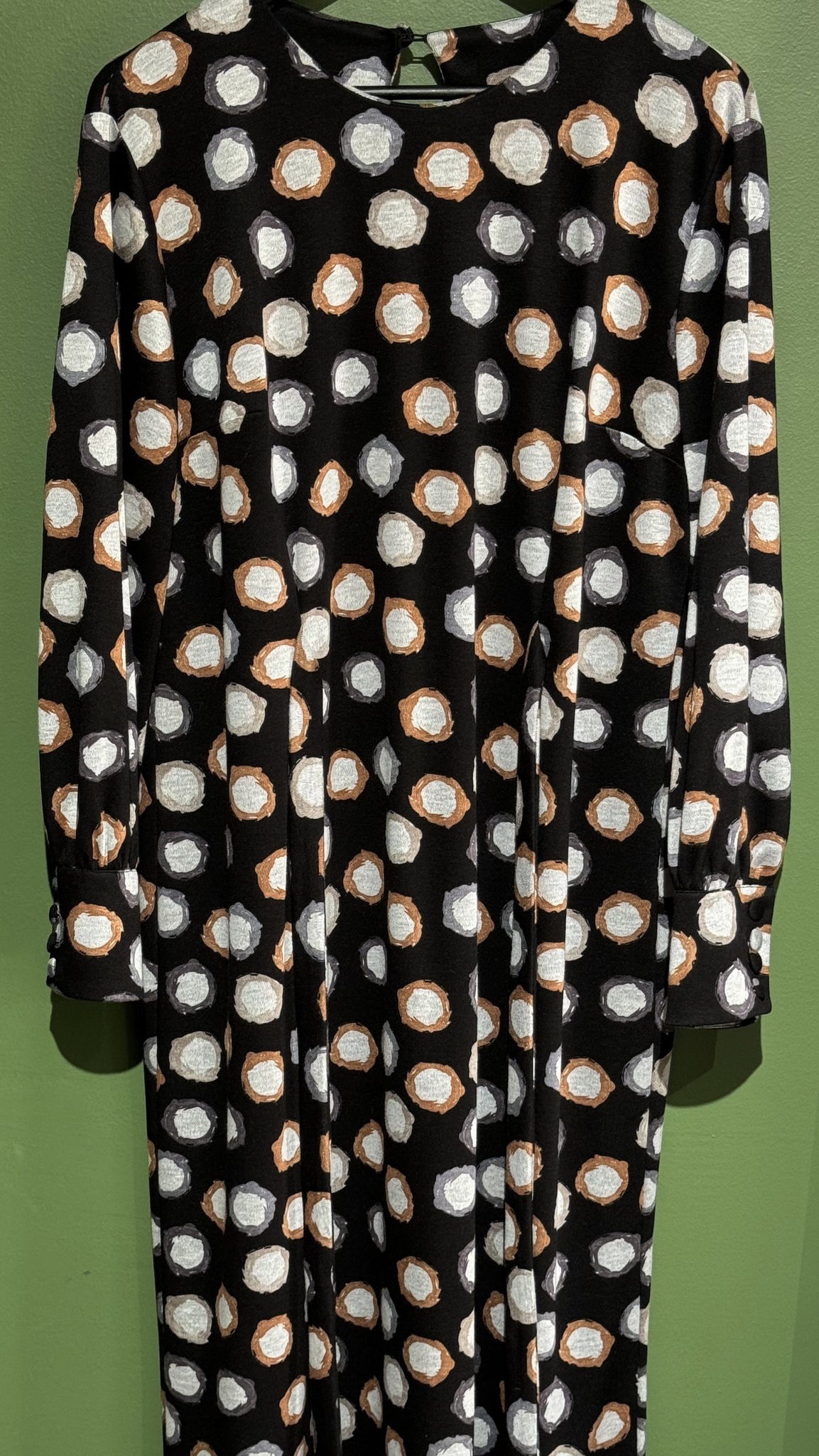 Платье прямого кроя с разрезом сзади. Застежка на спине на пуговицу. Рукава со сборкой на высоком манжете. На талии вшитые пояса.