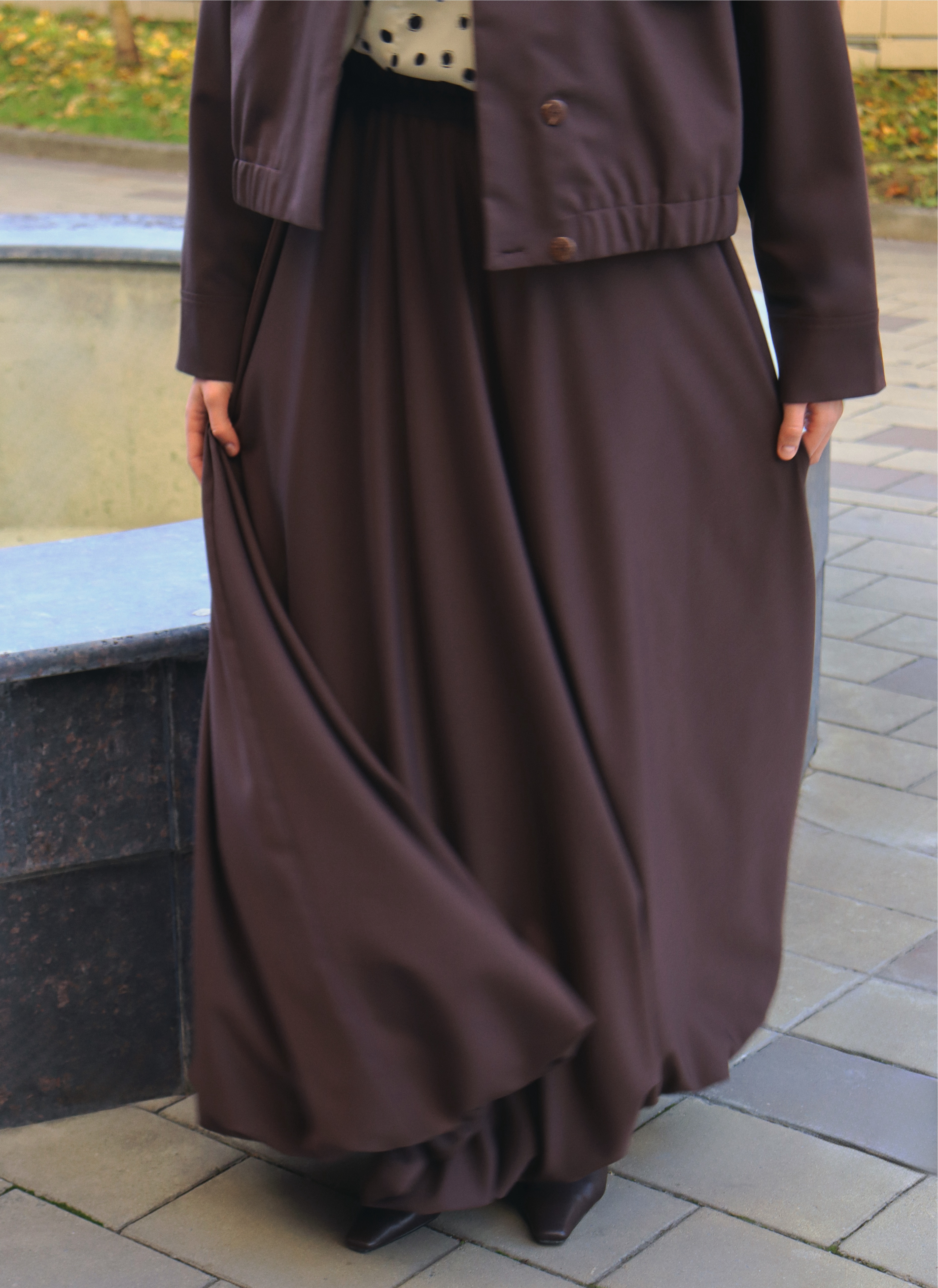 Эффектная юбка миди длины с объёмным силуэтом баллон. Выполнена из премиальной итальянской шерсти с гладкой подкладкой — комфортна к телу и держит форму весь день.